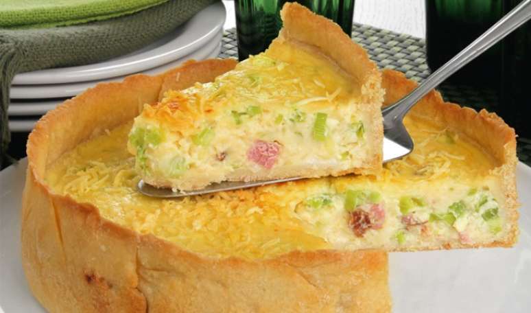 Se estiver procurando por receitas de quiche com sabores surpreendentes, esse recheio de queijo e bacon não tem erro!