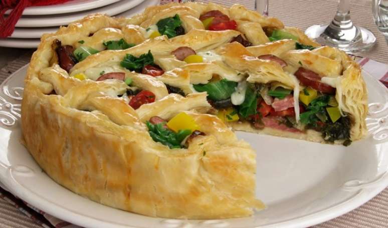 Torta folhada de calabresa e escarola