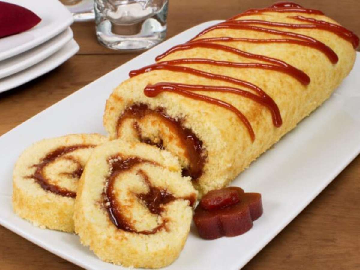 Deixe amornar, desenrole, espalhe os ingredientes do recheio misturados e enrole como rocambole. Decore com a goiabada cremosa e sirva.