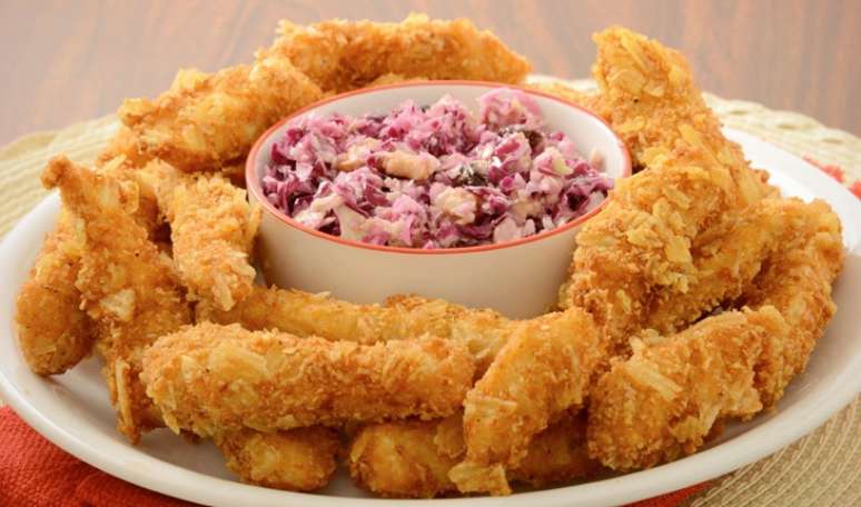 Iscas de peixe crocantes com vinagrete