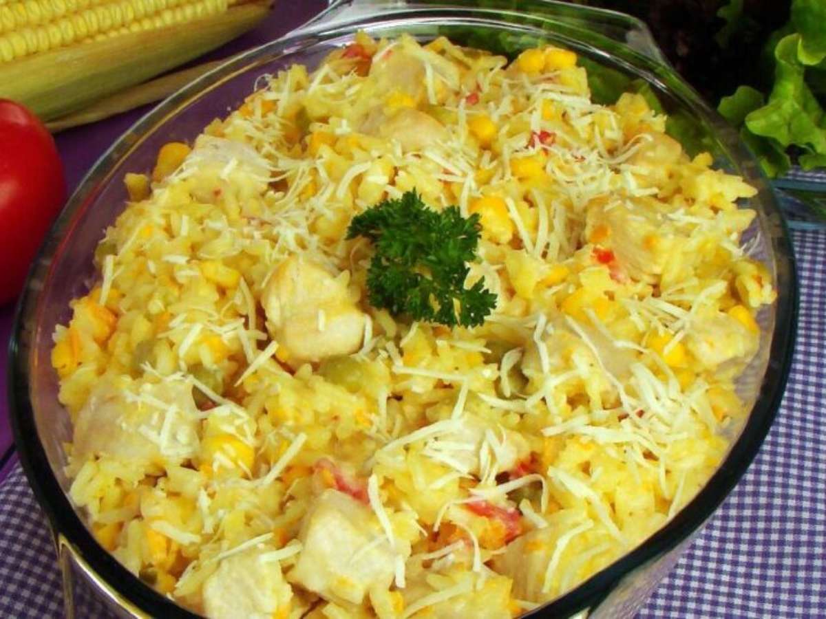 Arroz com frango no micro-ondas