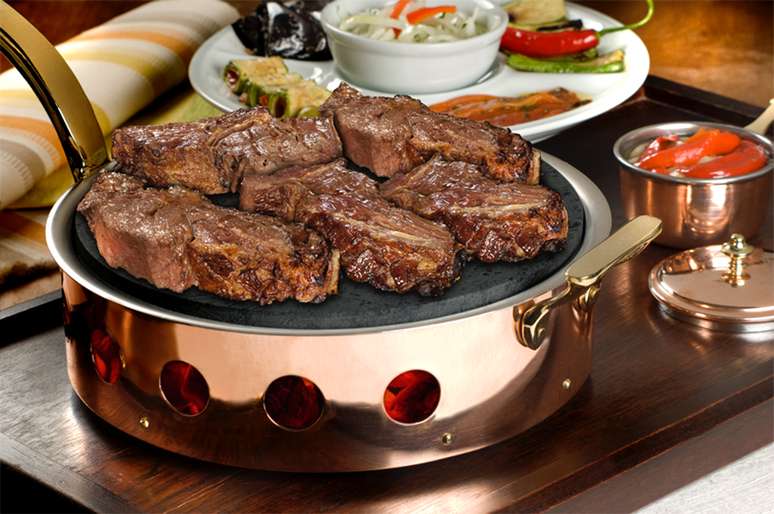 A carne é oferecida primeiramente fatiada no ponto desejado e depois volta à mesa grelhada em bistecas, o que resulta em uma degustação com texturas e sabores variados do mesmo corte de carne.
