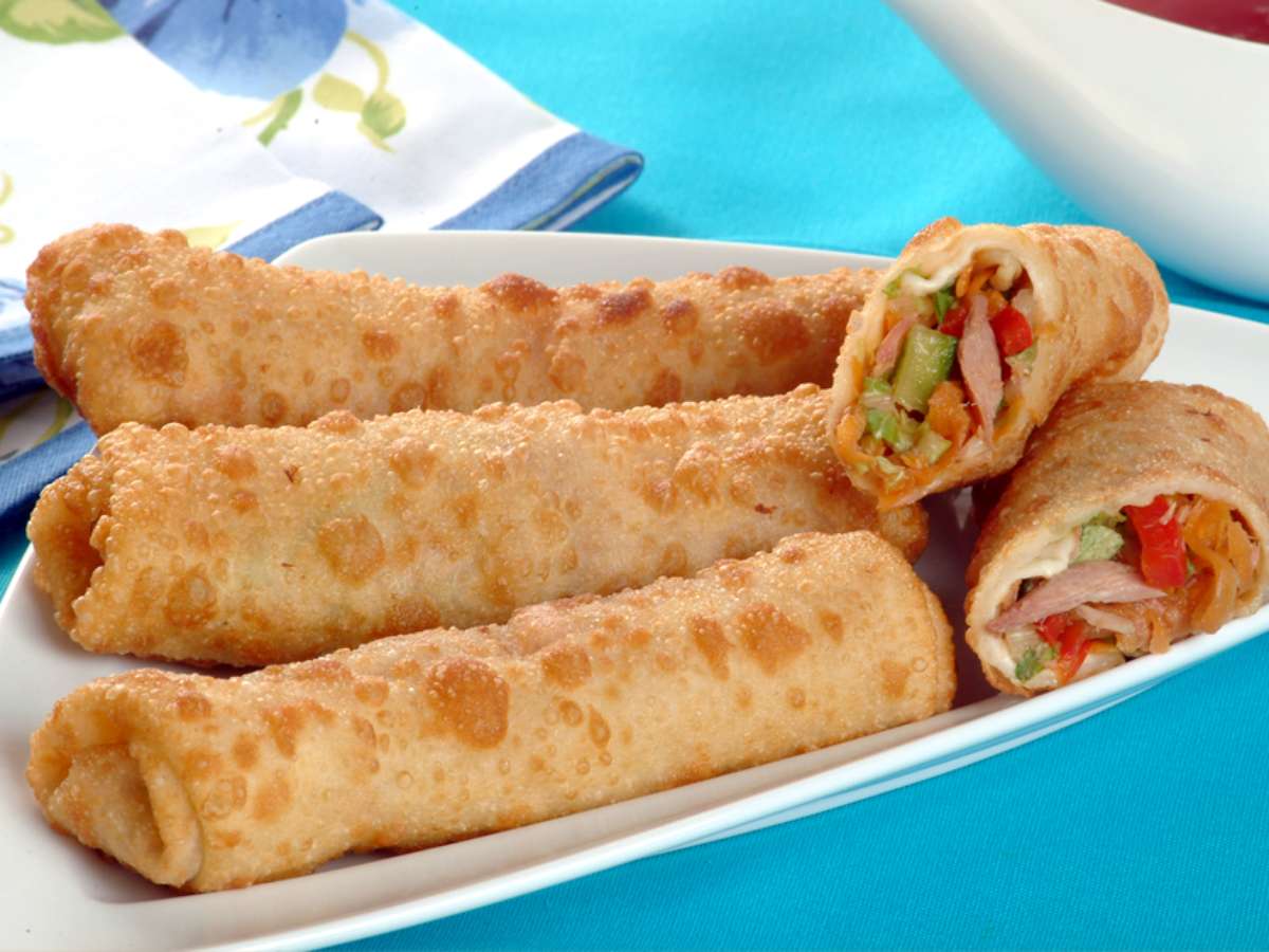 Ingredientes do rolinho primavera de atum com molho agridoce