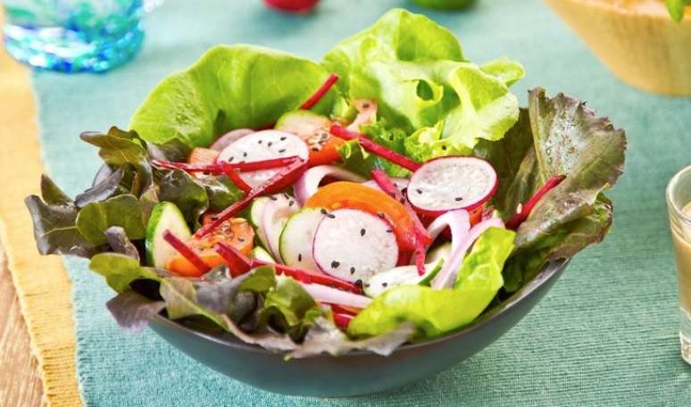 Salada de folhas com rabanete e molho de iogurte