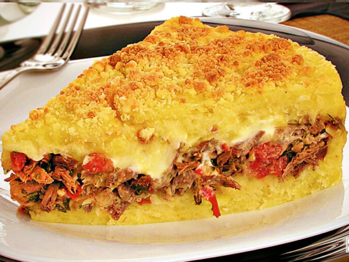 Torta cremosa de carne com mandioca