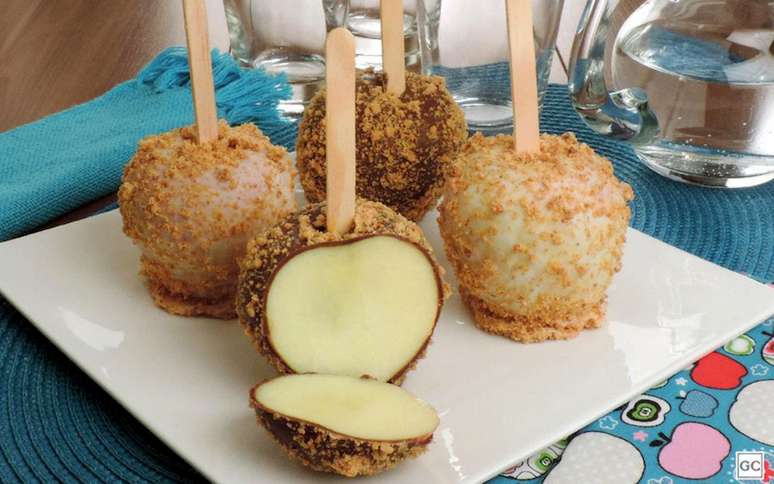 Se você é fã de maçã do amor, com certeza vai adorar essa versão incrementada com paçoca e chocolate.