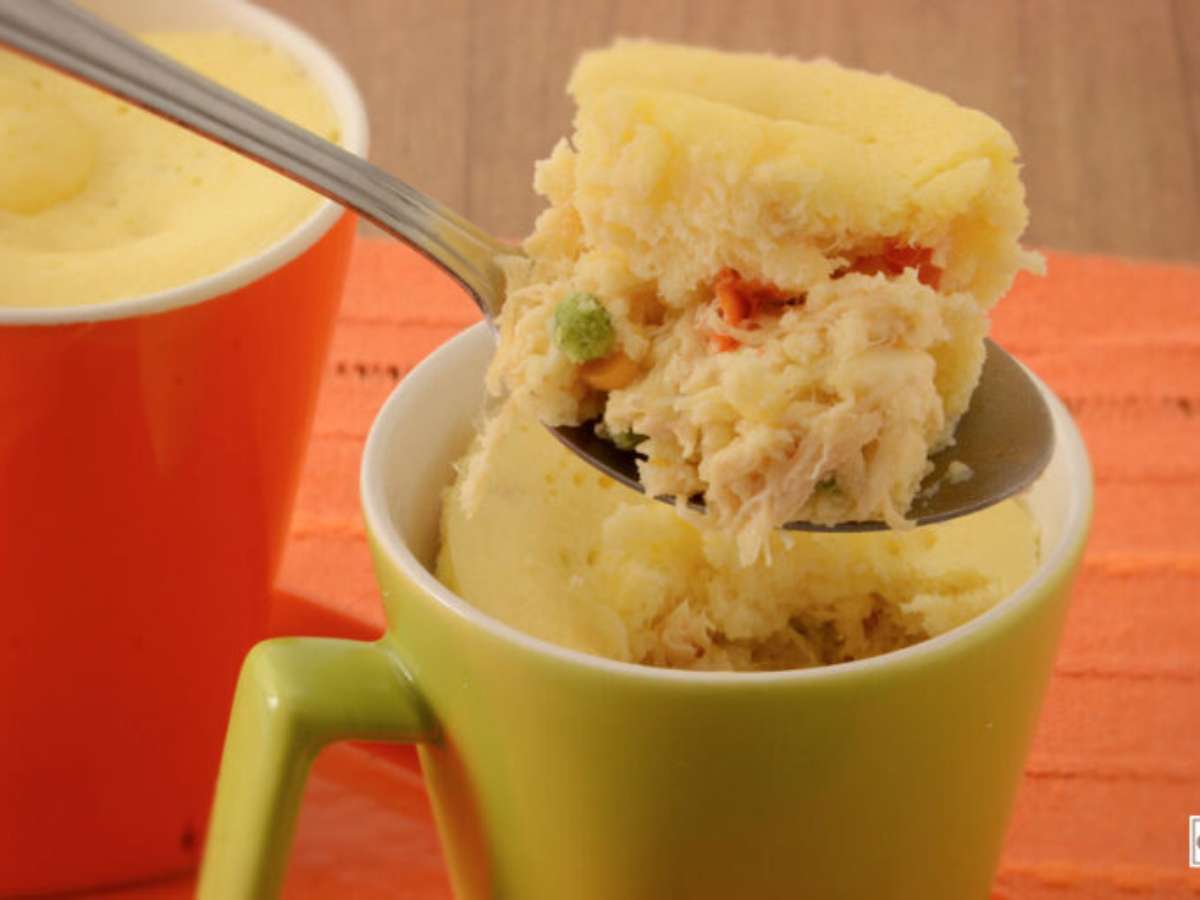 Torta na caneca de micro-ondas com recheio cremoso de frango