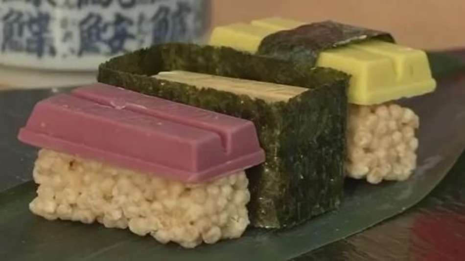 Gastronomia Japão cria sushi de chocolate Exibir comentários Compartilhar Sushi de chocolate em oferta para o Dia dos Namorados no Japão. Uma das lojas do chocolate KitKat, da Nestlé, em Tóquio oferece algo novo aos amantes. Reuters Publicidade