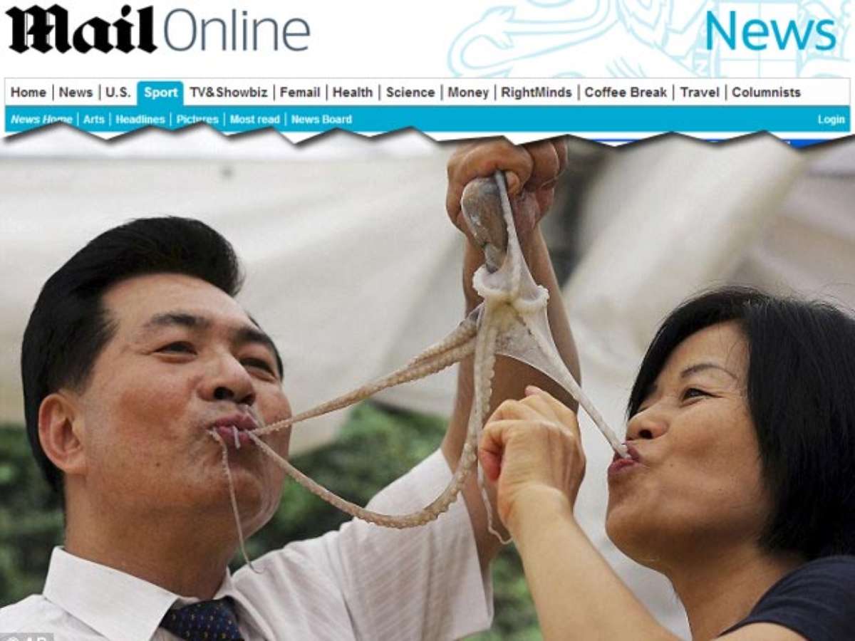 Visitantes de festival comem polvo vivo na Coreia do Sul