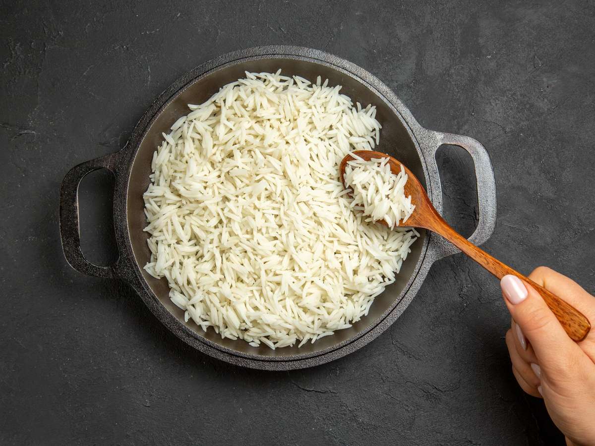Controlar as porções: 1 xícara de arroz cozido simples (cerca de 140 g) tem, em média, 200 calorias. Quando consumido em excesso, pode ultrapassar as necessidades da refeição.