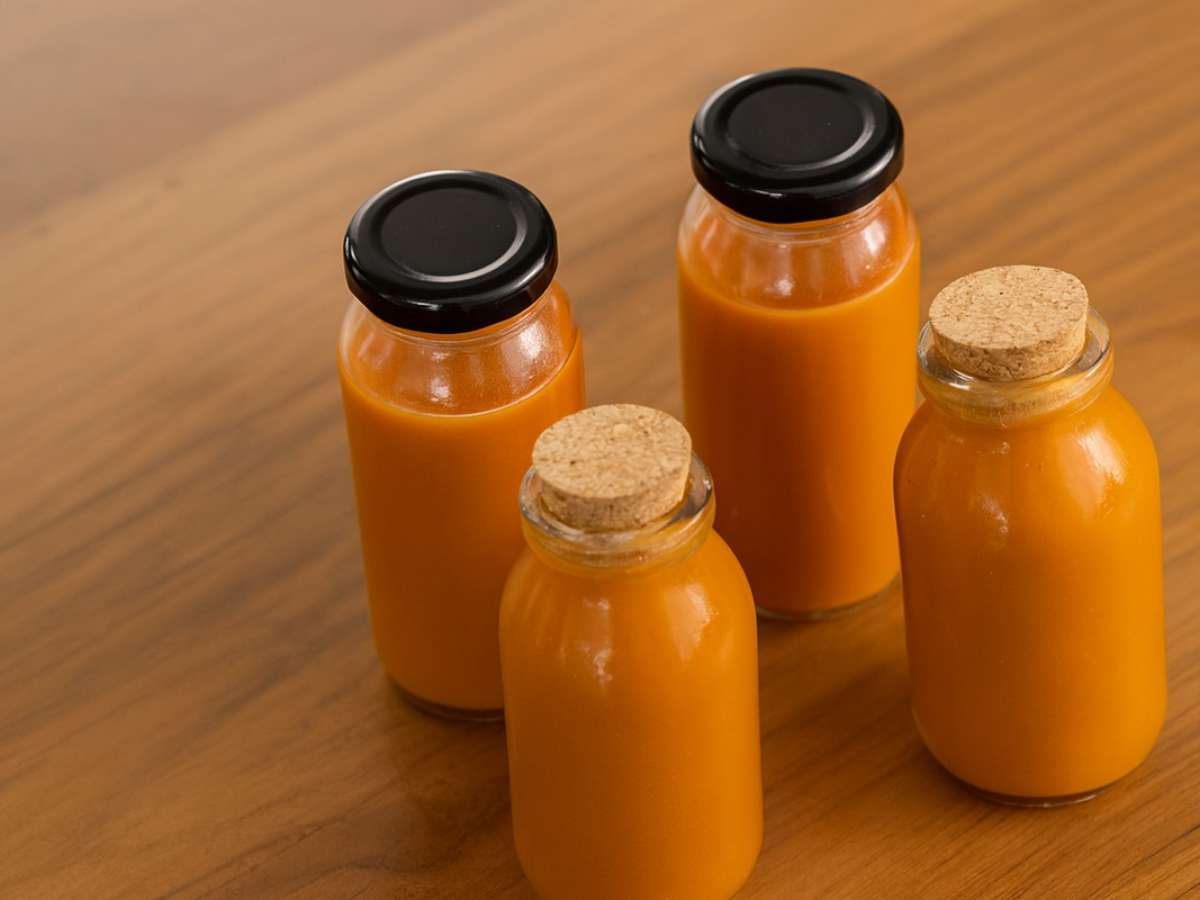 Aqui te ensino um shot simples feito com cenoura, cúrcuma e gengibre, que pode melhorar a saúde da pele, da visão e até da imunidade.