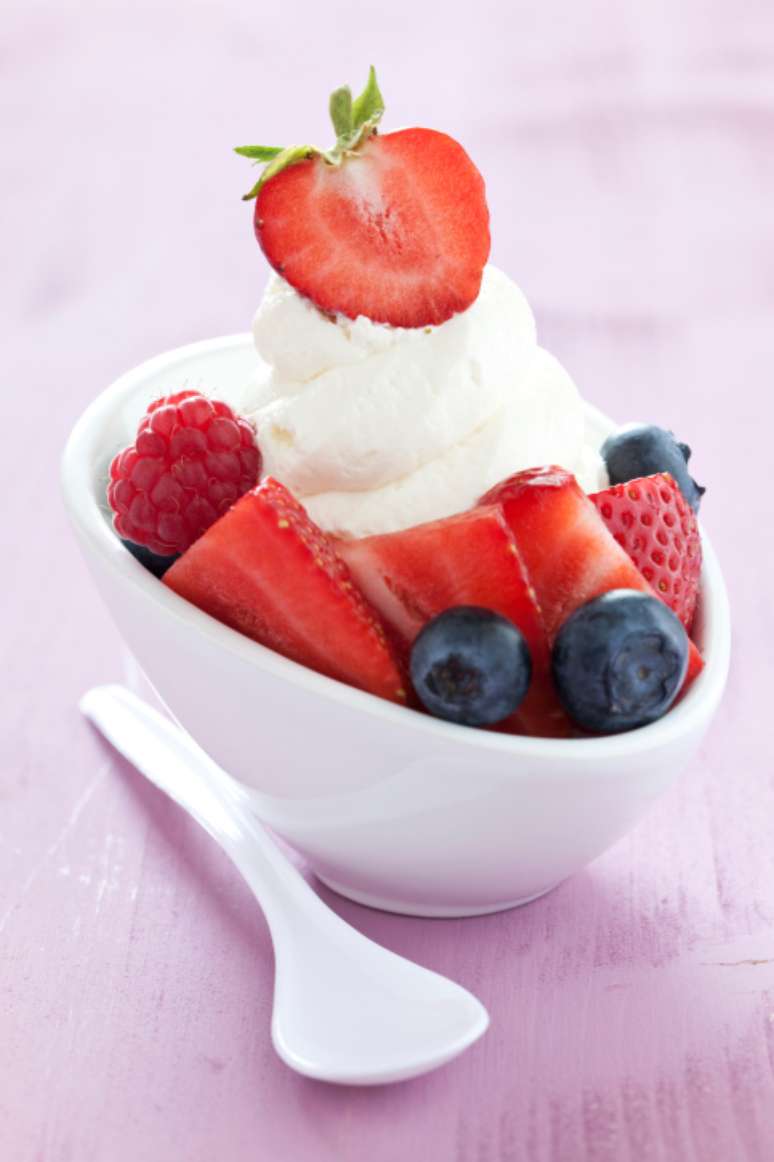 Troque a ordem: para manter as calorias sob controle, troque a ordem dos ingredientes no copo. Primeiro, coloque as frutas, depois, complete com o iogurte. A tendência será comer mais frutas e menos iogurte