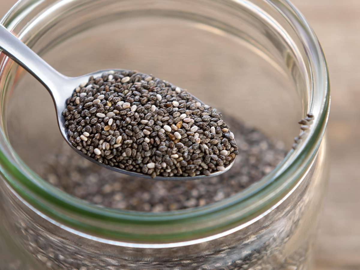 Já a chia é conhecida por sua alta capacidade de absorver água — quando hidratada, forma um gel rico em fibras solúveis que prolonga a sensação de saciedade e favorece o controle do apetite.