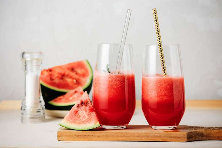 Cada fruta tem seus benefícios próprios. Se um suco levar melancia, por exemplo, é bom saber que essa fruta é rica em potássio, que aumenta a produção de urina, ajudando a eliminar as toxinas e a reduzir o inchaço. E se tiver canela, melhor ainda, pois essa especiaria acelera o metabolismo, promovendo queima de gordura corporal. Já a água de pepino funciona como diurético natural e tem baixas calorias.