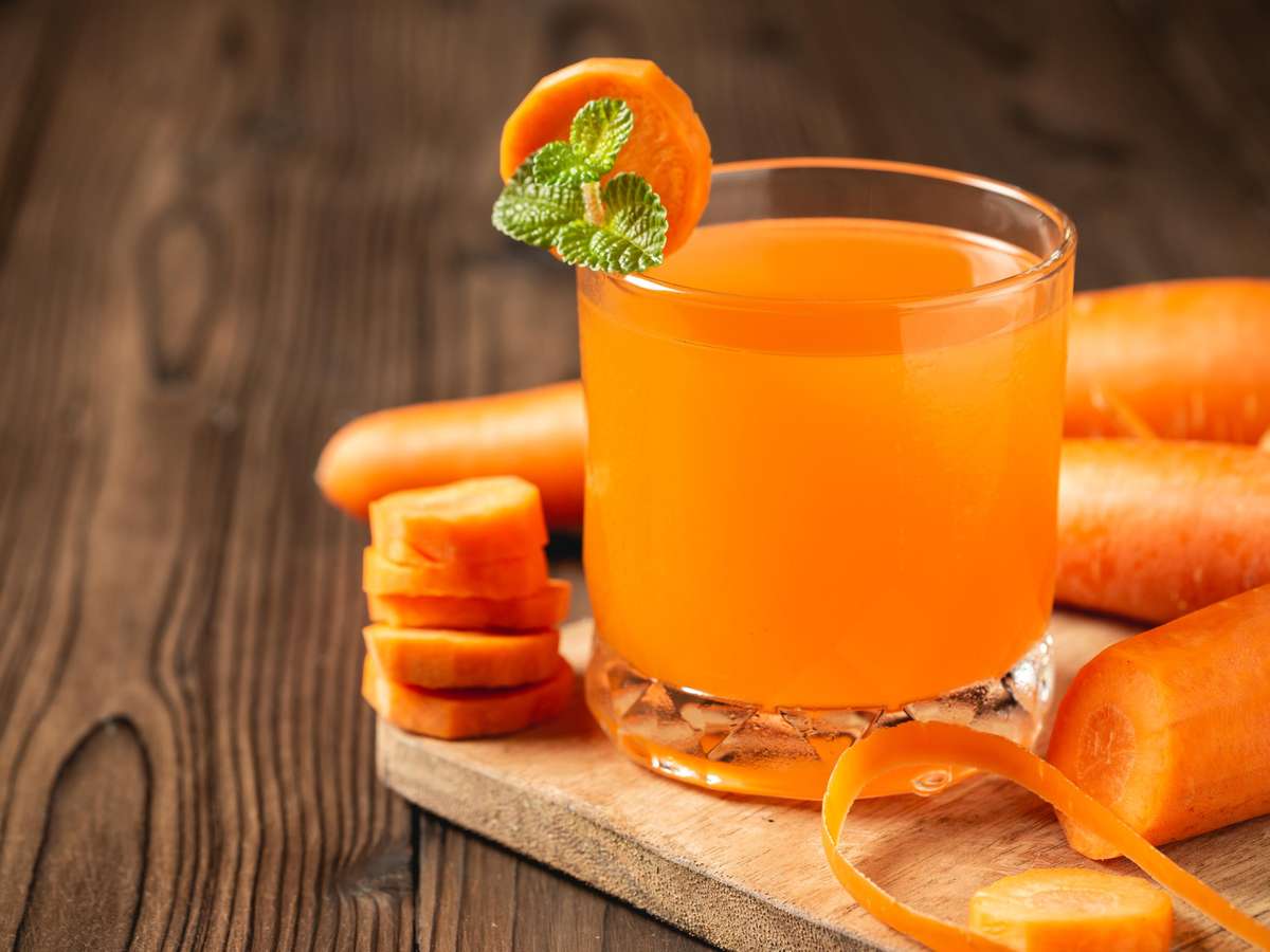 O suco de cenoura é rico em betacaroteno, um antioxidante que o corpo transforma em vitamina A. Isso oferece benefícios na saúde da pele, da visão, do sistema imunológico e no combate aos radicais livres.