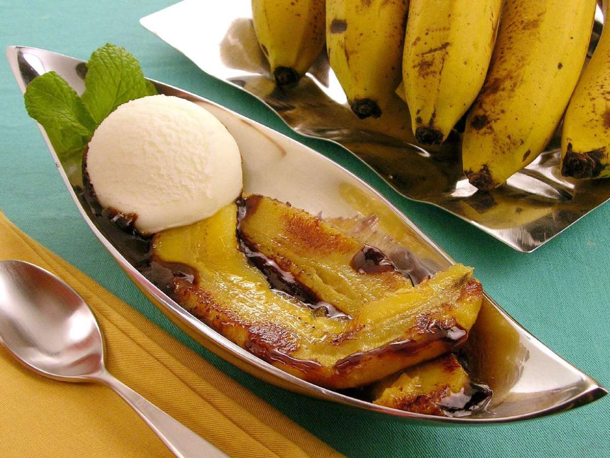 Banana flambada com sorvete de creme: uma sobremesa bem fácil de preparar