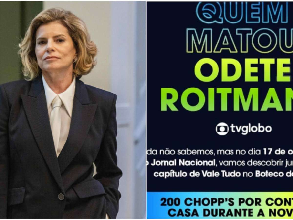 Na legenda do post no Instagram, o bar entrou no clima da trama com bom humor: "Quem matou Odete Roitman a gente não sabe né? Mas quem vai dar 200 chopps GRÁTIS para você assistir a final da novela nesta sexta 17/10 no Boteco do Teixeira em parceria com a TV Globo você já sabe! É isso mesmo, venha assistir a final da novela e descobrir quem matou Odete Roitman que o chopp é por nossa conta. São 200 chopps Amstel liberados durante a novela para ficar ainda melhor essa final! E aí, quem matou Odete Roitman? Vemmm!"