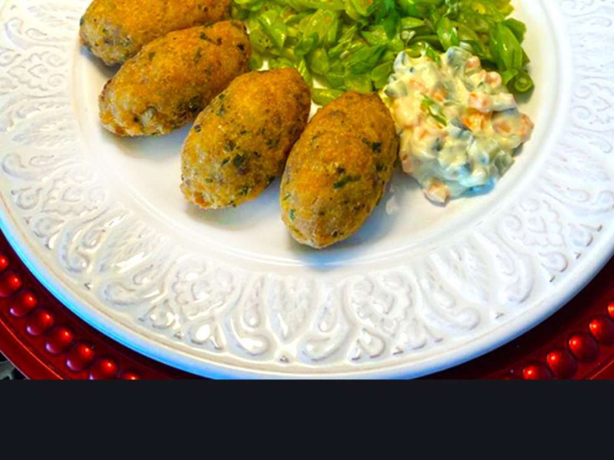 Bolinho de peixe, com alcaparras, uma entrada ou quitute, mais econômico do que o bolinho de bacalhau e muito delicioso
