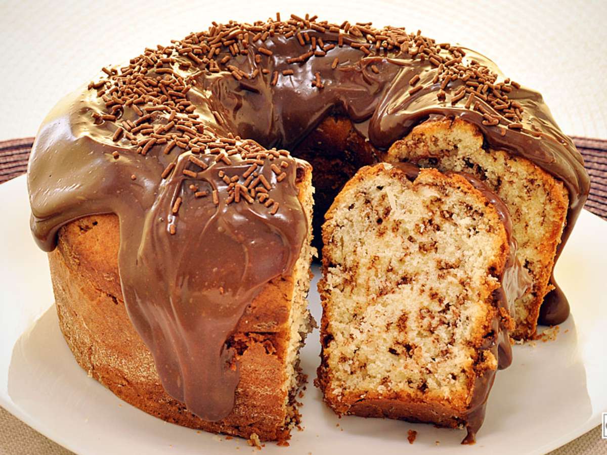 - Despeje em uma fôrma de buraco no meio grande, untada e enfarinhada, e leve ao forno médio, preaquecido, por 30 minutos ou até dourar. Retire, deixe amornar e desenforme.