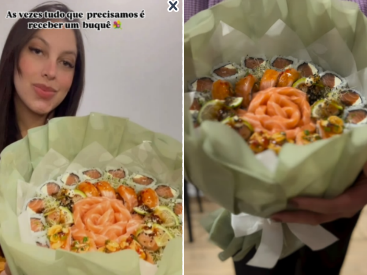 Flores são clássicas, mas quem disse que não dá para inovar? Em Rio do Sul (SC), o restaurante Takashi transformou o tradicional presente romântico em uma experiência gastronômica inusitada: um buquê feito de sushi, que custa em média R$ 250, dependendo do tamanho e número de peças.