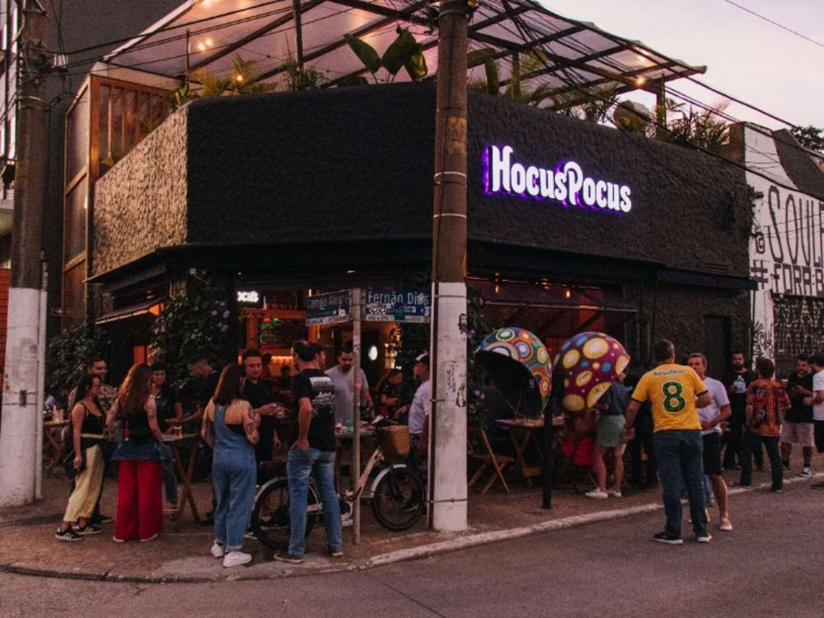 A Hocus Pocus, nascida no Rio de Janeiro em 2014 e com alguns prêmios na bagagem conquistados de lá para cá – entre eles o de “Melhor Cerveja”, no Mondial de la Bière, por dois anos consecutivos –, é estrela em um bar underground de Pinheiros que leva o nome da cervejaria. A casa inaugurou no Largo da Batata no final de 2022 e recebe apreciadores e entusiastas da bebida num ambiente descolado que está sempre de portas abertas para artistas de rua. Ao todo são 15 estilos de chope, entre fixos e rotativos, que saem das torneiras.