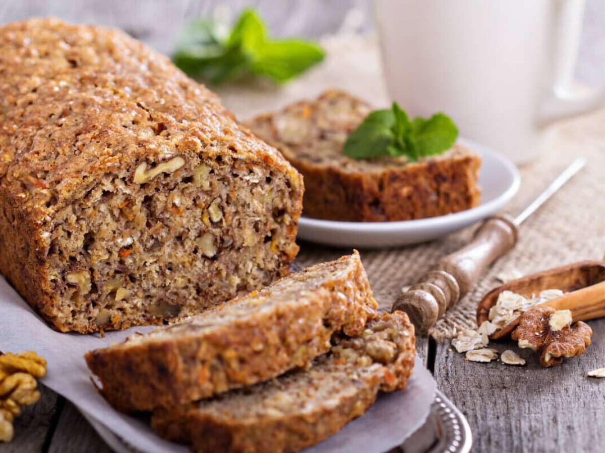 Em um recipiente, coloque a aveia, o polvilho doce, o açúcar mascavo e a goma xantana e misture bem. No centro da mistura, faça um buraco e adicione o ovo, o sal e metade da água. Mexa até obter uma consistência homogênea e, aos poucos, acrescente o restante da água. Por último, junte o mix de castanhas, as nozes e a cenoura e misture bem. Deixe a massa descansar por 15 minutos. Após, unte uma assadeira com óleo de coco e enfarinhe com farinha de trigo, despeje a massa sobre ela e leve ao forno preaquecido em 180ºC por 35 minutos. Desligue o fogo, espere esfriar, desenforme e sirva em seguida.