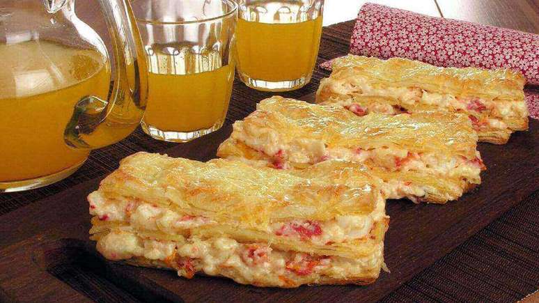 Prove a versão salgada do mil-folhas que leva palmito e tomate seco
