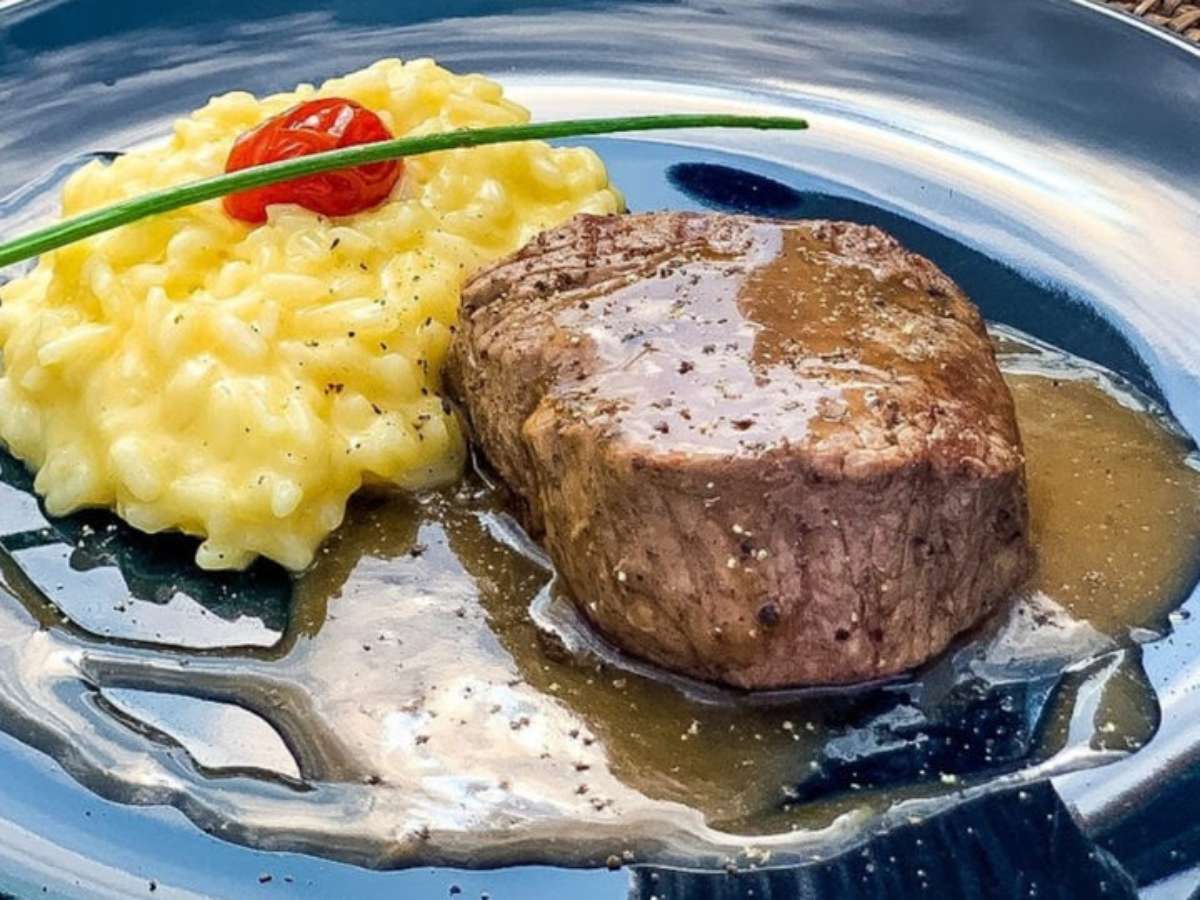 Filé mignon com risoto de queijo parmesão do chef Samuele Oliva