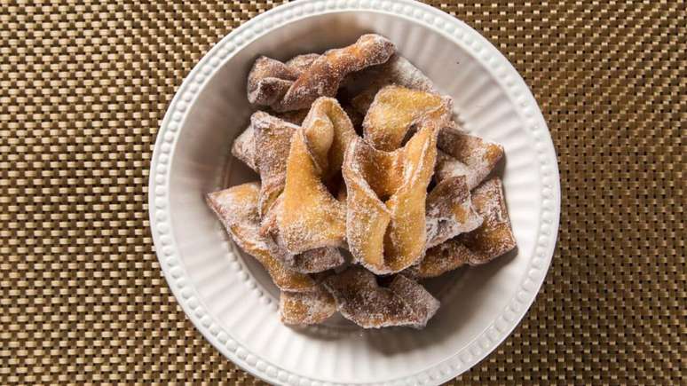 - Retire o excesso de óleo com um papel toalha e passe na misturinha de açúcar e canela para servir em seguida.