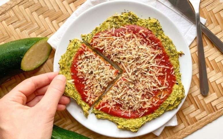 Além de ser uma opção sem glúten, ela funciona como uma solução rápida, que dispensa a espera sem abrir mão do prazer de comer com as mãos. O grande segredo está na umidade. O maior risco ao trabalhar com massas feitas de vegetais é acabar com um purê difícil de modelar. Por isso, o truque para dar estrutura à base e mantê-la firme é a drenagem. Ao ralar a abobrinha, é importante polvilhá-la com uma pitada de sal e deixá-la descansar para que libere sua água natural. Depois, basta espremer bem com um pano de prato limpo até que fique quase seca.