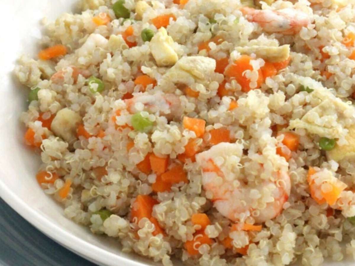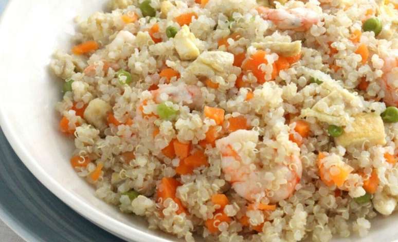 Quinoa proteica com legumes e camarão