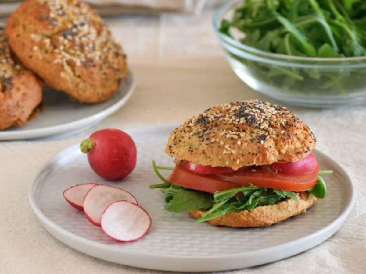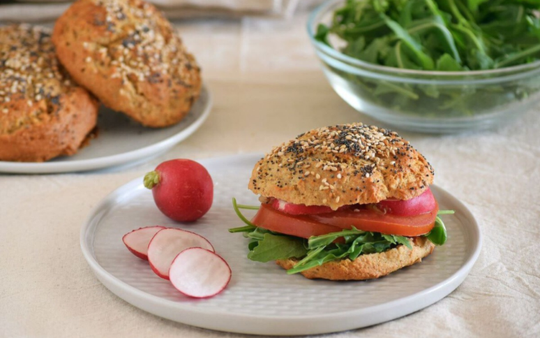 A massa é muito rica em proteínas efibras, pois não contém trigo, apenas farinha de aveia e iogurte natural, além de claras de ovo e sementes a gosto. É recomendado usar um iogurte grego com 5% de gordura.O resultado são pãezinhos macios e fofinhos, com sabor neutro. É possível tostá-los depois de cortados ao meio, dependendo do recheio. Você pode dobrar as quantidades da receita para fazer um pão maior, ou aproveitar a oportunidade para congelar uma boa quantidade de pãezinhos; espere que esfriem e embrulhe-os individualmente antes de colocá-los em um saco com fecho hermético. Leia também: Pão de atum sem farinha e cheio de proteína que sacia de verdade: aprenda a fazer