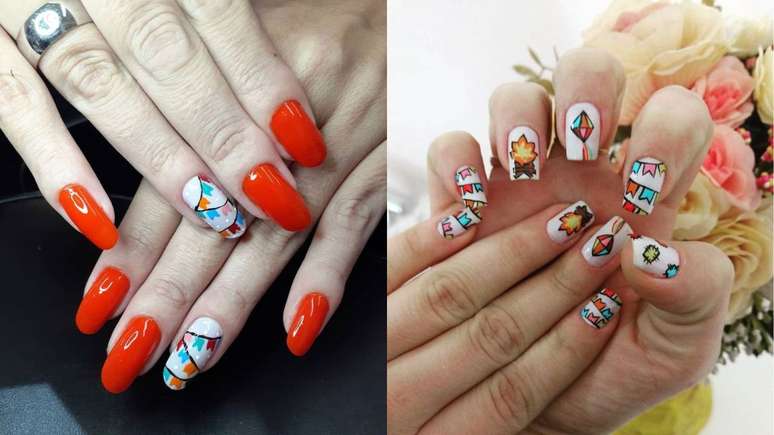 Além das roupas xadrez e da maquiagem tradicional para festa junina, você também pode apostar em unhas temáticas para a data