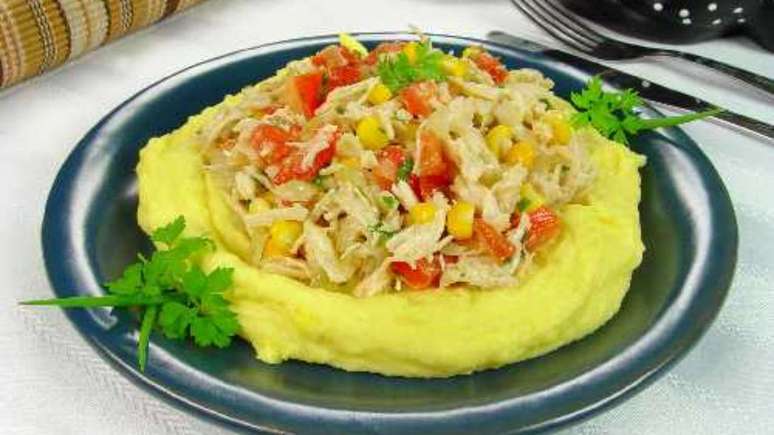 Frango caipira com purê de mandioquinha: receita para o almoço