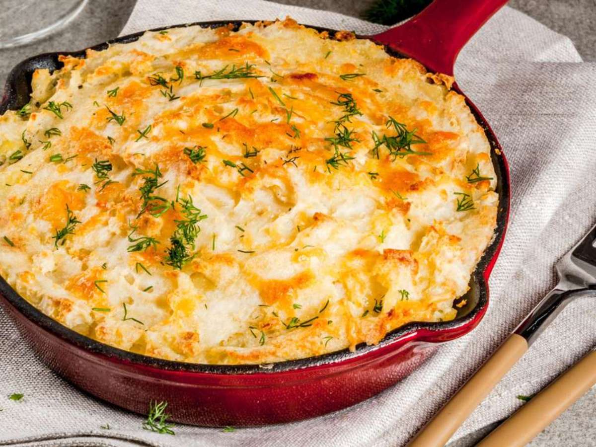- Transfira para um refratário médio untado e cubra com os queijos misturados.