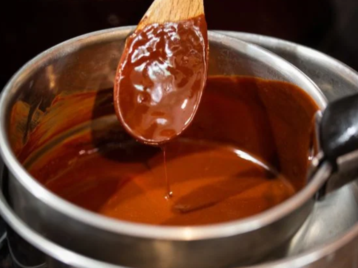 - Leve ao fogo baixo, mexendo sempre, até o chocolate derreter completamente