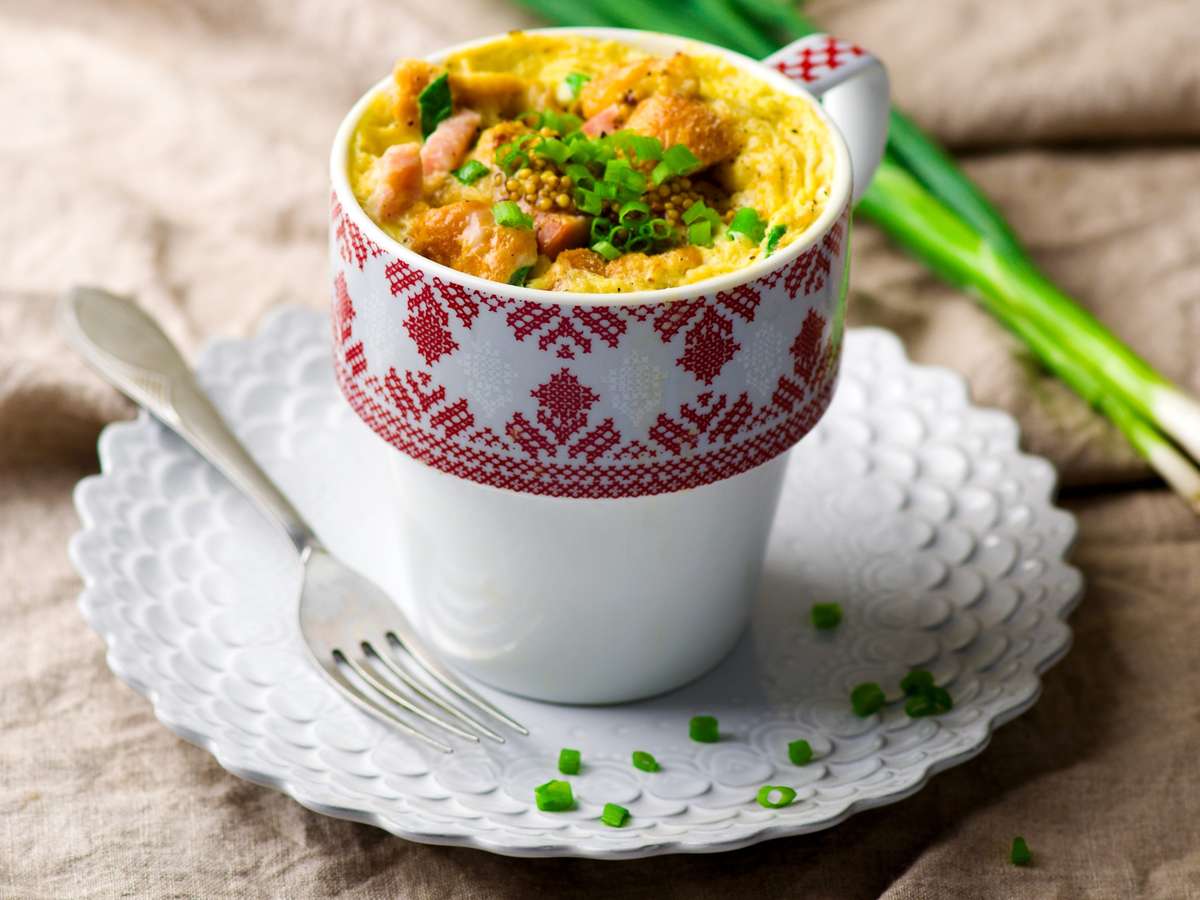 Omelete na caneca pronto em 2 minutos é o café da manhã rápido ou lanche prático com ovo perfeito