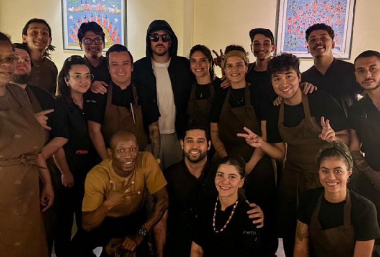 Após se apresentar em dois shows na capital, o cantor esteve no Metzi, onde posou para fotos com cerca de 15 integrantes da equipe. No jantar, ele e seus acompanhantes optaram pelo menu degustação, ao custo de R$ 490 por pessoa. A sequência inclui pratos como barbacoa de cordeiro, wagyu com mole de caruru, diferentes versões de tortillas feitas na casa e sobremesas como três leches e churros.