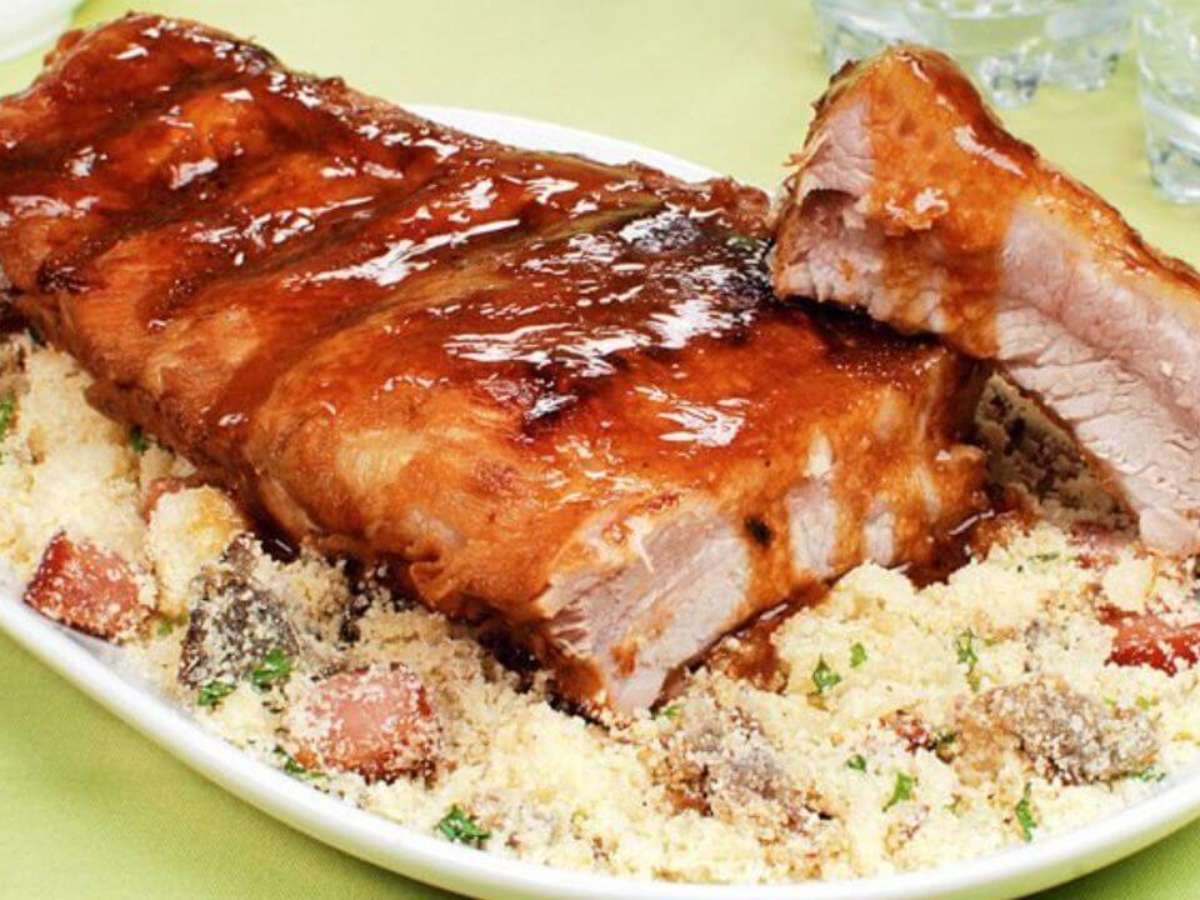 Costelinha agridoce com farofa