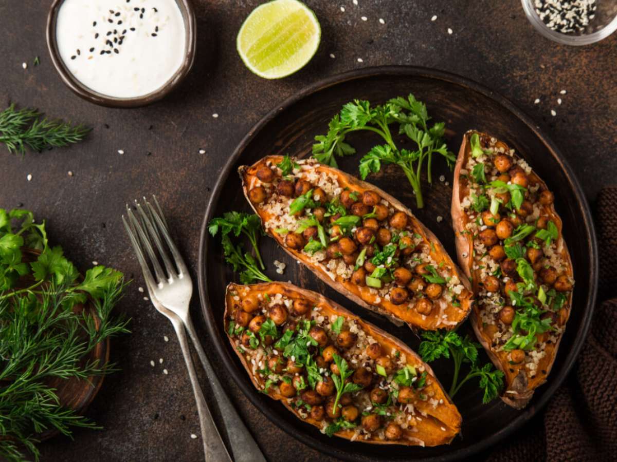 1. Batata-doce recheada com grão-de-bico