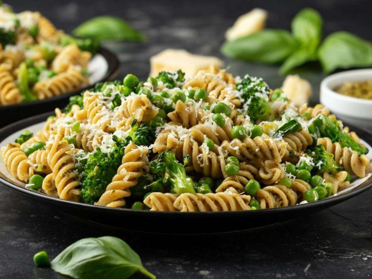 Se você quer um jantar com "cara de restaurante" e zero carne, essa é a pedida. A combinação italiana de tomate, queijo e manjericão é infalível. O molho pesto traz uma explosão de sabor e uma cor vibrante ao prato.