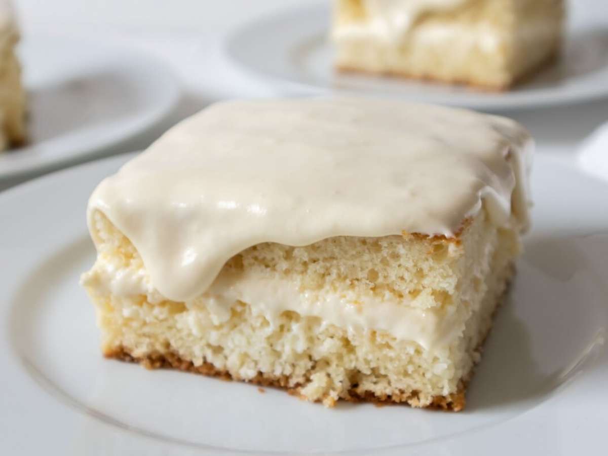 Corte o bolo ao meio, no sentido horizontal. Espalhe metade do creme sobre a primeira parte da massa. Coloque a outra metade por cima e cubra com o restante do creme. Leve à geladeira por 2 horas antes de servir para firmar bem o recheio e a cobertura.