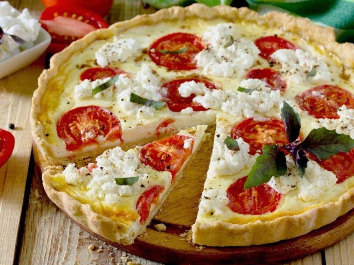 Leve ao forno médio, preaquecido, por 50 minutos ou até dourar. Corte em pedaços e, se desejar, sirva acompanhada de tomates-cerejas.