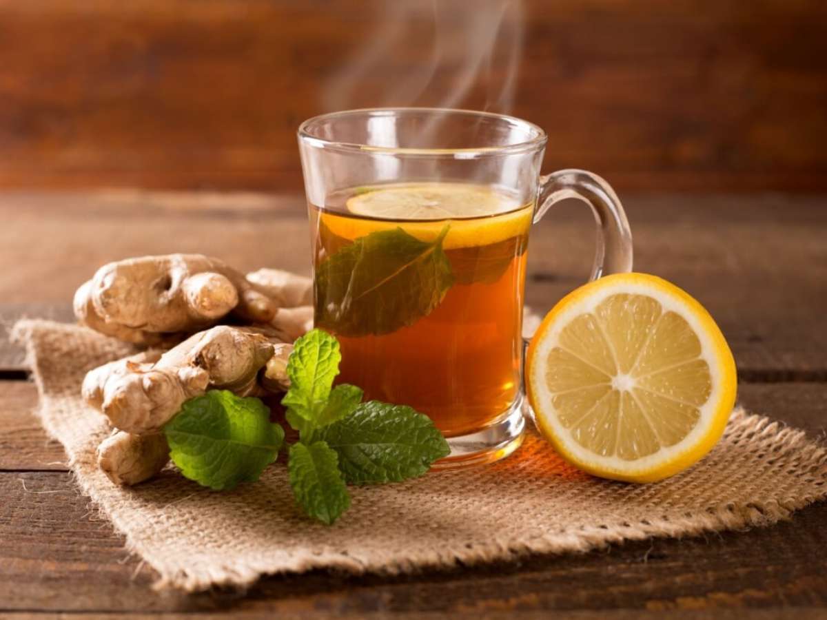 Chá de gengibre com limão e hortelã