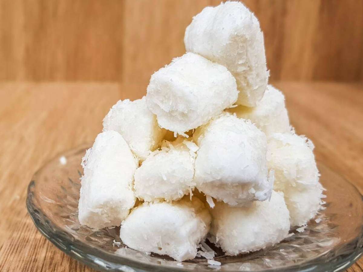Em uma panela, coloque o leite de coco, a água e o açúcar e misture até dissolver completamente o açúcar. Leve ao fogo médio por 50 minutos, sem mexer. Desligue o fogo assim que o doce obter uma consistência de puxa-puxa. Disponha o doce sobre uma superfície lisa e untada com óleo de coco. Espere esfriar e estique a massa até que fique esbranquiçada. Após, corte no formato de retângulos pequenos e deixe a massa secar. Disponha em um recipiente e sirva em seguida.