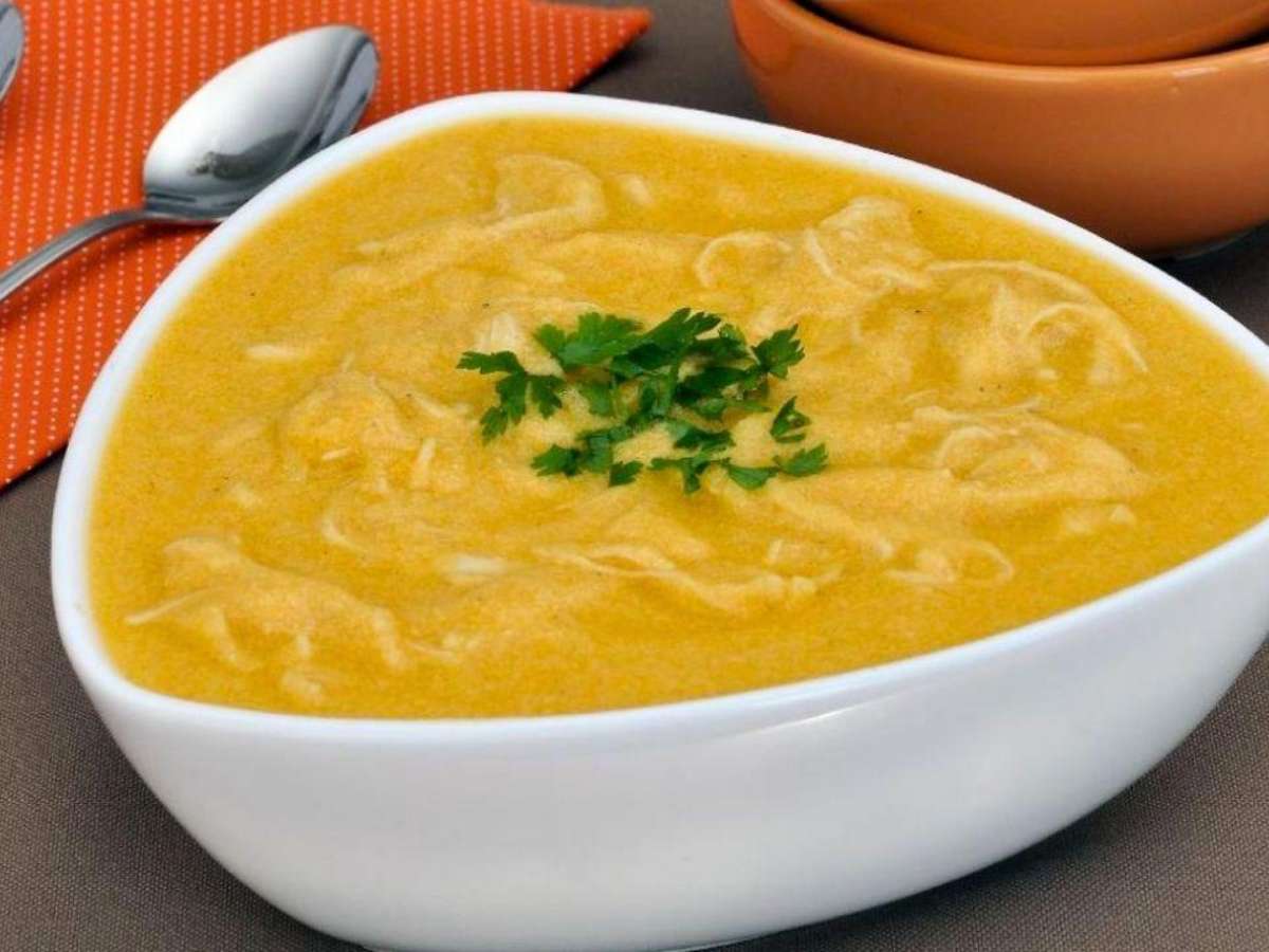 4. Caldo de abóbora com frango e milho