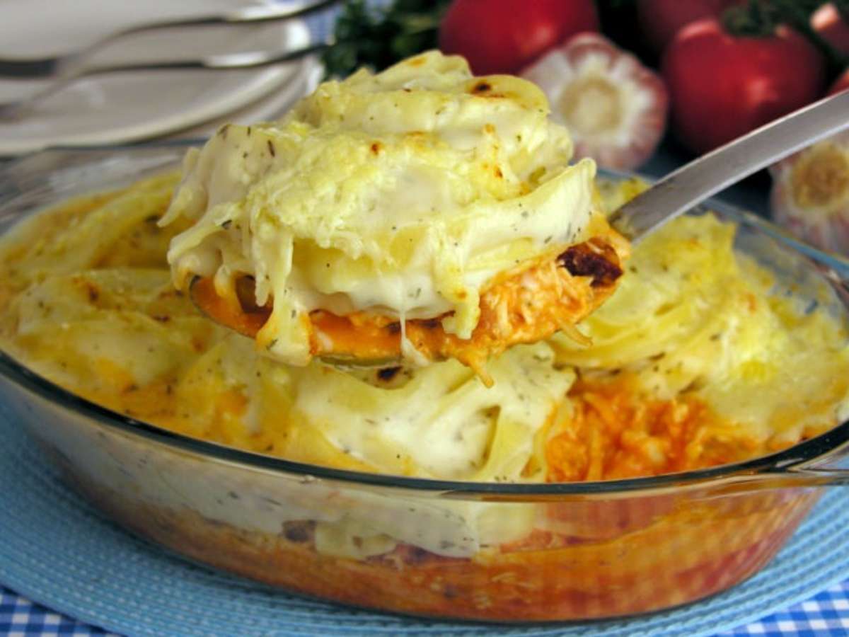 Macarrão cremoso de forno com molho rosé e branco