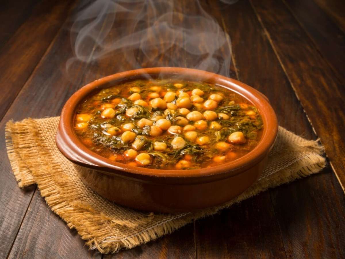 Sopa de grão-de-bico com espinafre e tomate