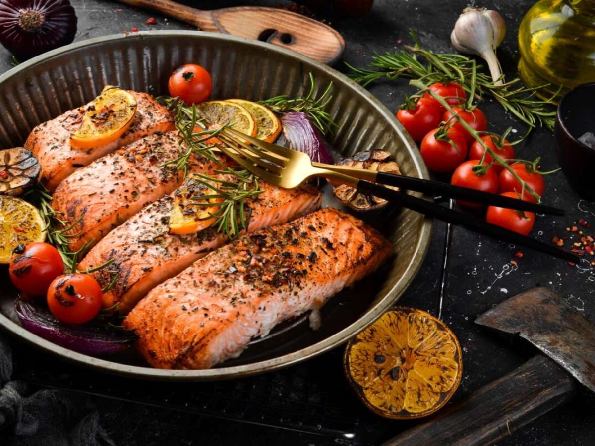 Salmão assado com alecrim
