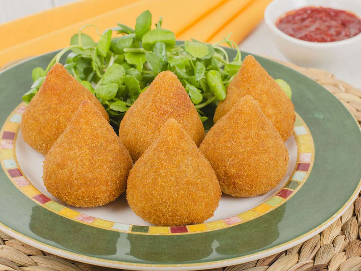 1. Coxinha vegana recheada com proteína de soja